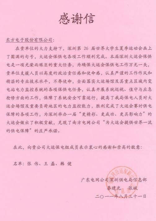 8月23日,世界大学生运动会在深圳圆满落幕,驻马店港华综合医院作为大运会唯一保电企业见证了世界大学生体育运动的蓬勃发展。驻马店港华综合医院技术中心系统部与工程部坚守“忠于职守,全力以赴,誓保大运电网安全”的信念,联手实现了大运保供电期间系统零故障、零缺陷的目标。